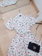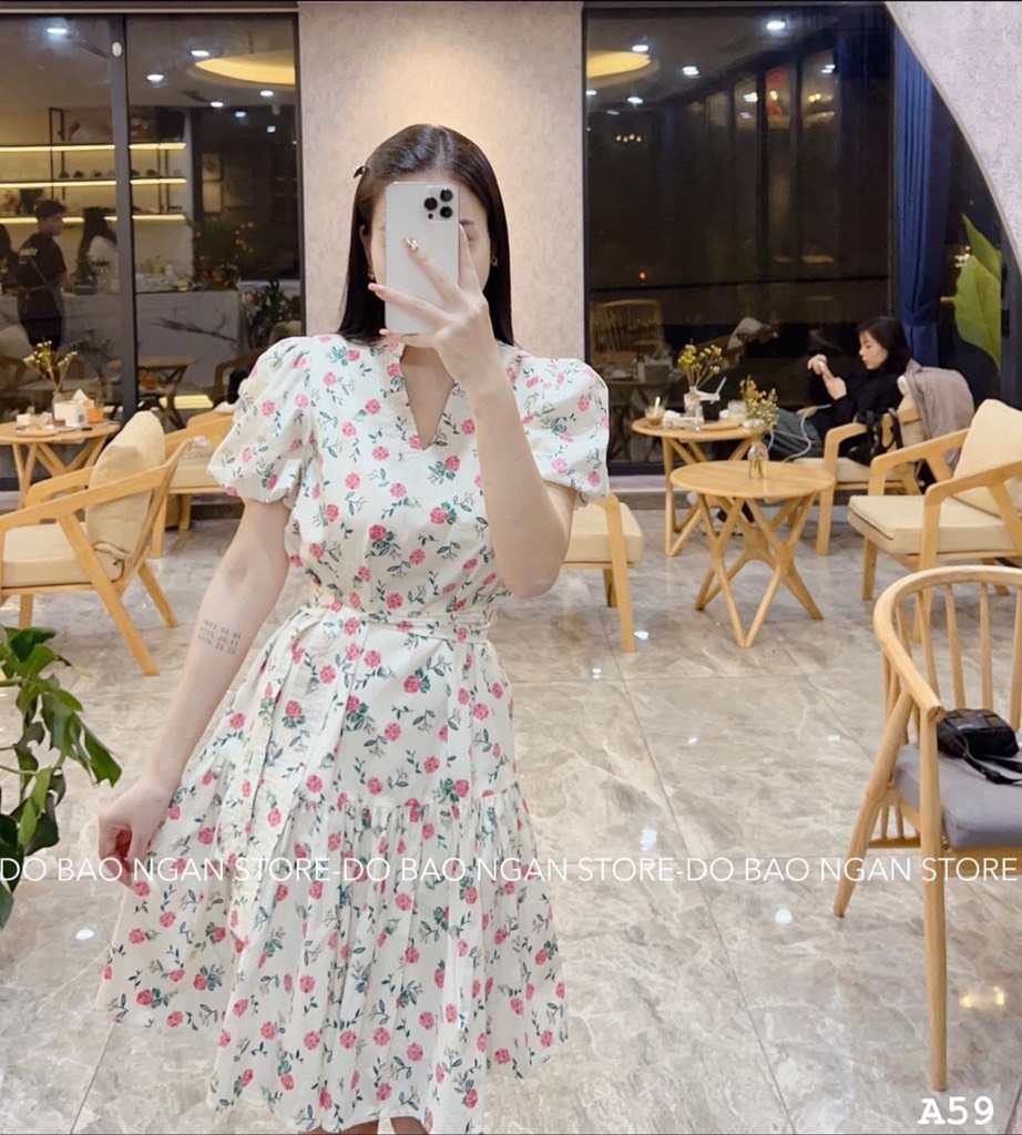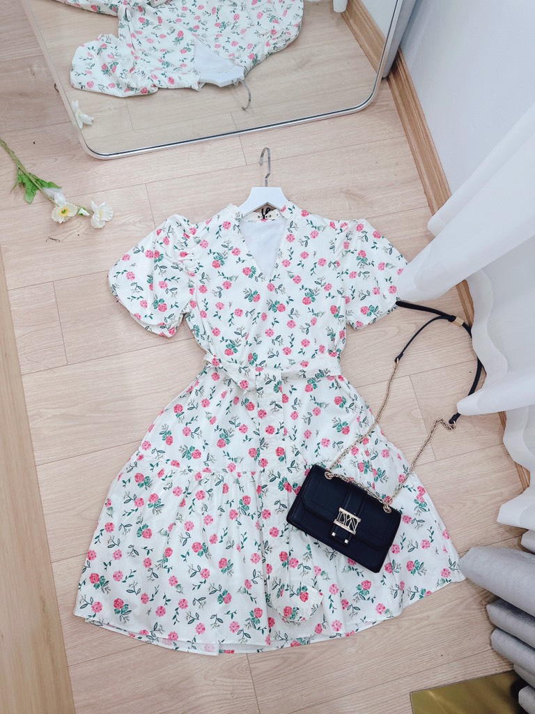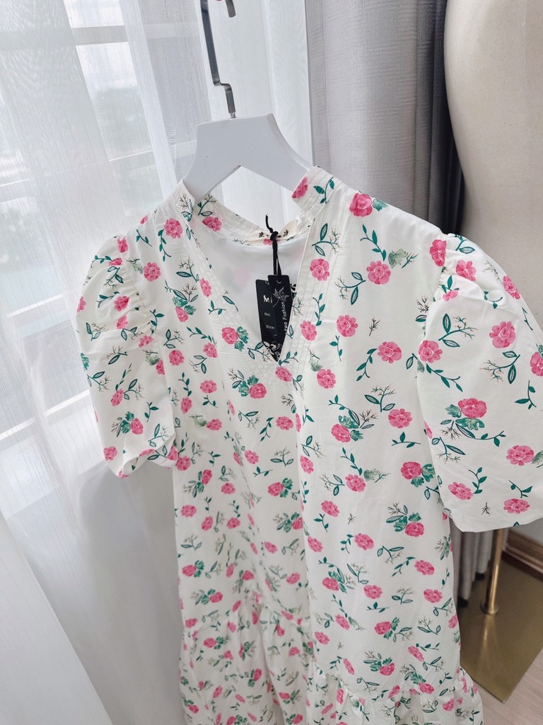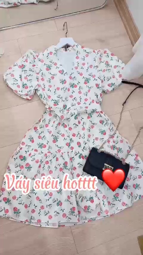 ☘️ VÁY HOA CỔ V CHẠY DÂY CỔ V 2 LỚP HỒNG ☘️
