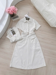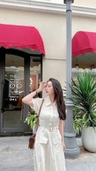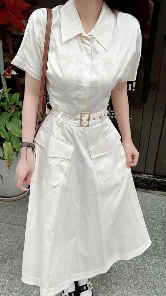 🌿 VÁY KAKI DÁNG DÀI – ĐAI EO, HAI TÚI CHẤT LỪ 🌸