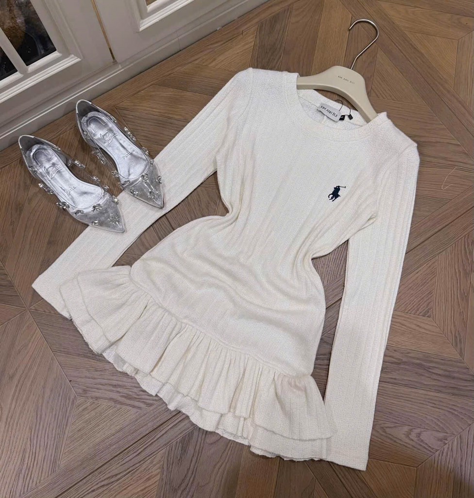 VÁY LEN DÀI TAY THÊU NGỰA 2M TRẮNG NÂU