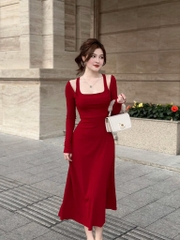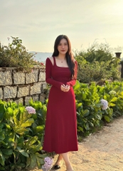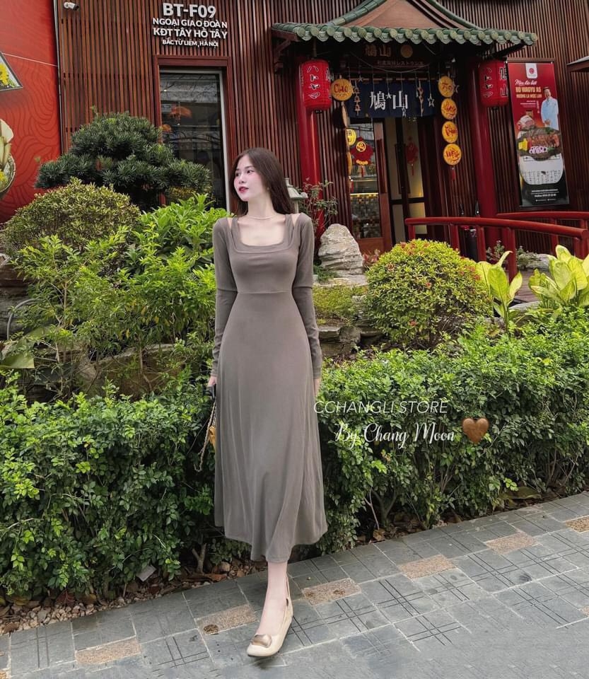 ☘️ VÁY LEN MIDI CỔ VUÔNG ĐAN 🍇