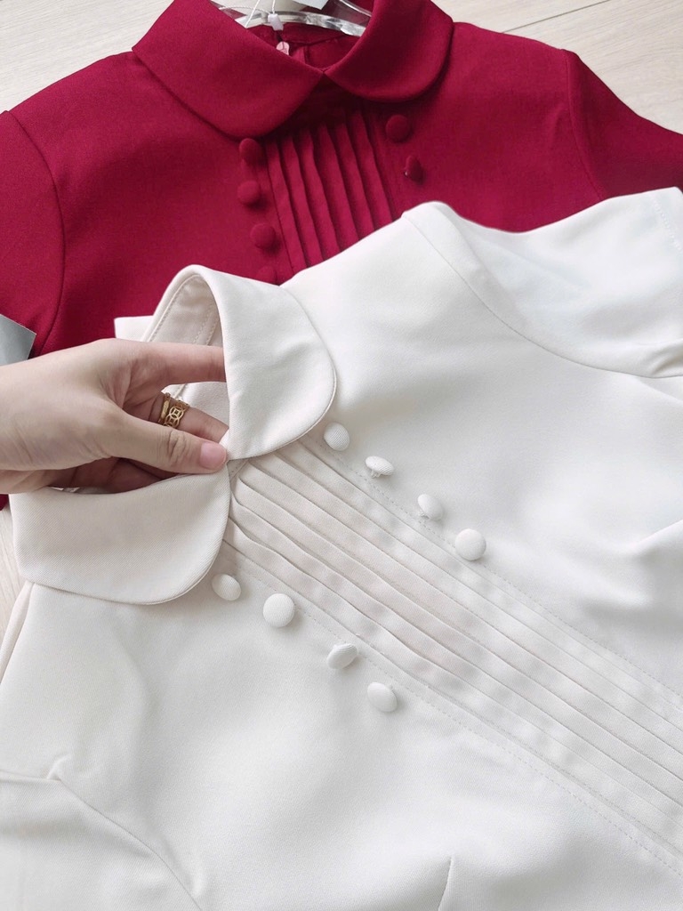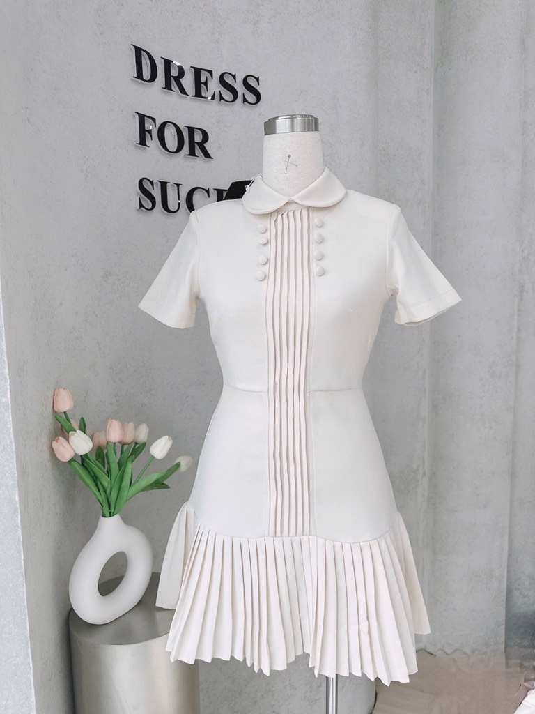 🌷Váy li xếp tinh tế, cúc bọc ton-sur-ton – lựa chọn hoàn hảo cho nàng yêu vẻ đẹp thanh lịch pha chút cổ điển.