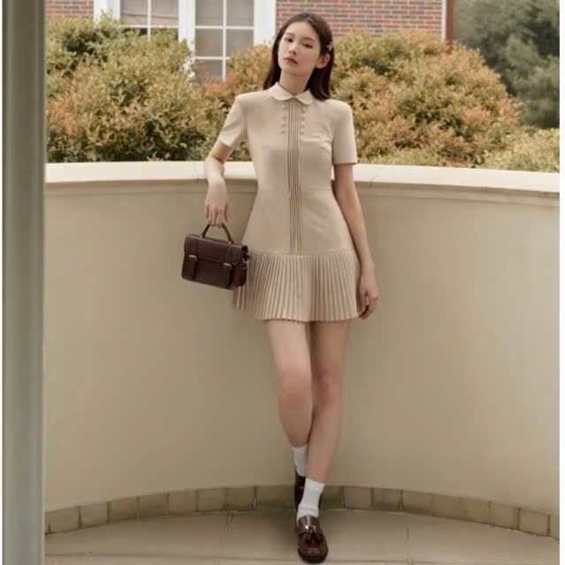 🌷Thiết kế dáng A nhẹ tôn dáng, phần thân váy ôm vừa phải kết hợp tùng váy li xếp mềm mại - giúp che khuyết điểm khéo léo.