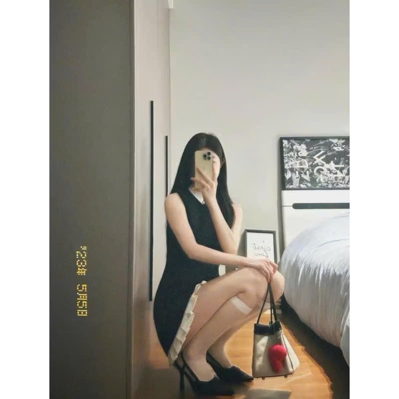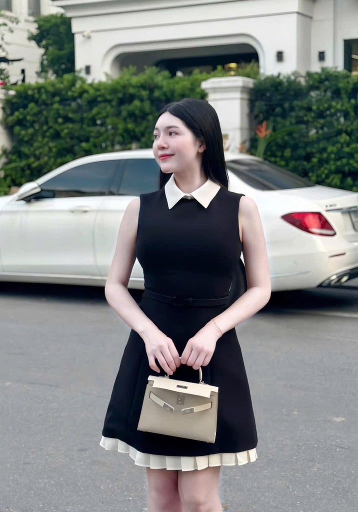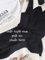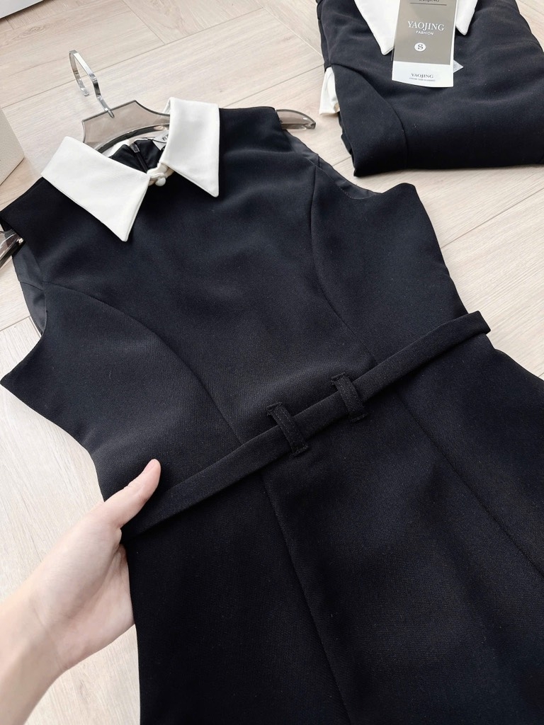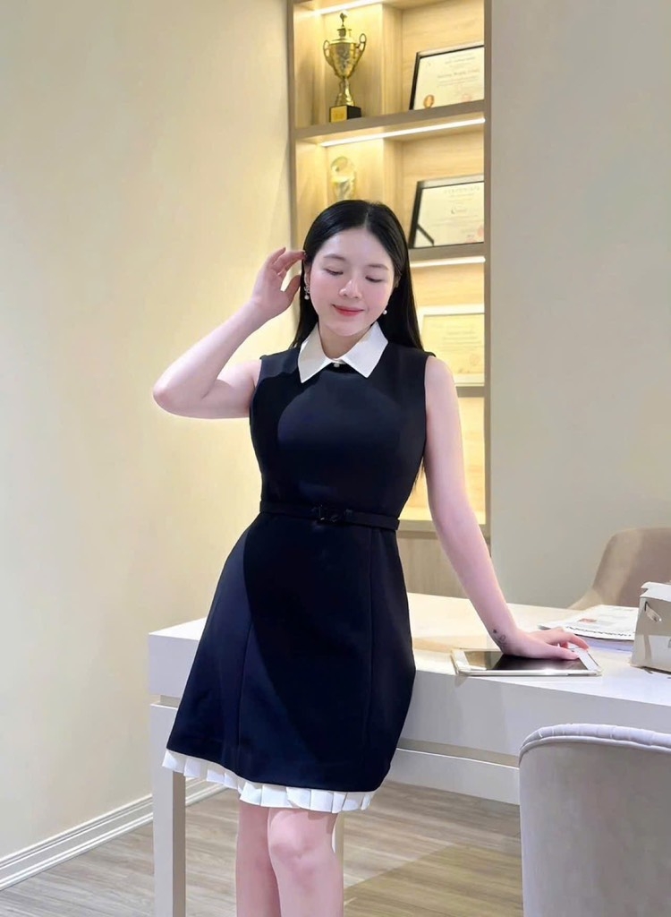 ☘️Thiết kế váy 2 lớp may tỉ mỉ, tùng gấu dưới dập ly đẳng cấp, phối cổ trắng thanh lịch và đai eo tôn dáng đẳng cấp !