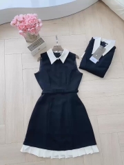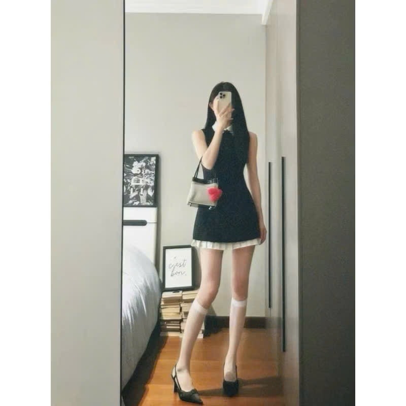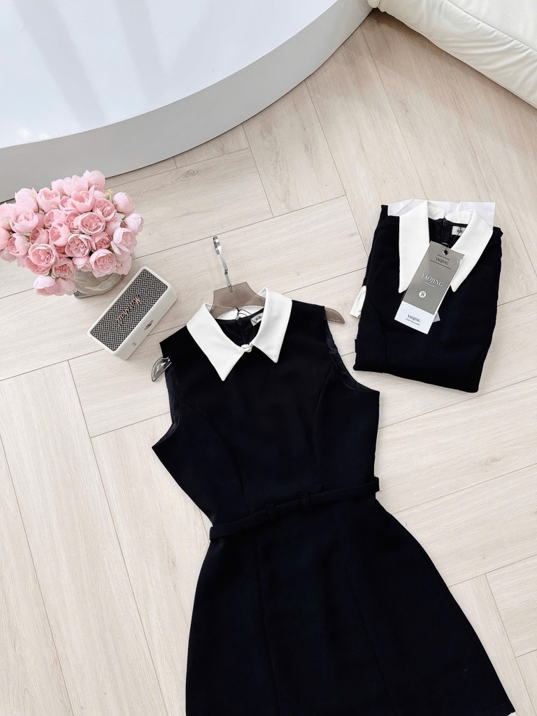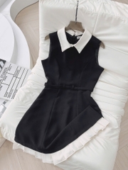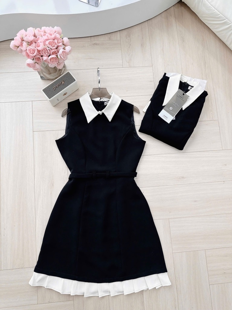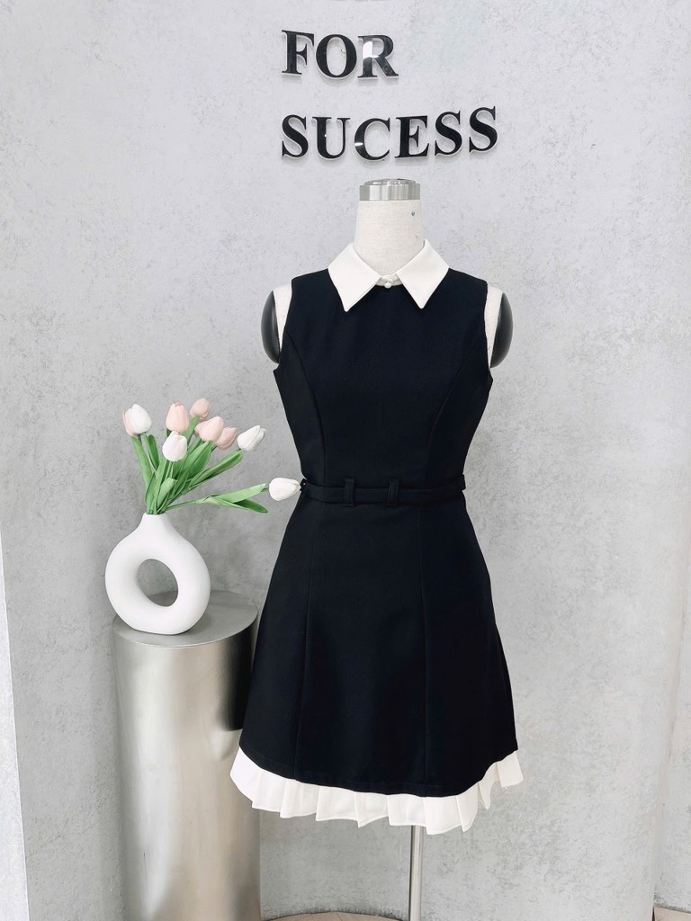 🍀 VÁY PHỐI CỔ HAI LỚP TÙNG XẾP LI ĐAI EO 🌷