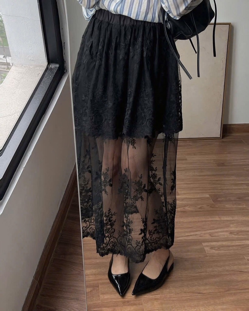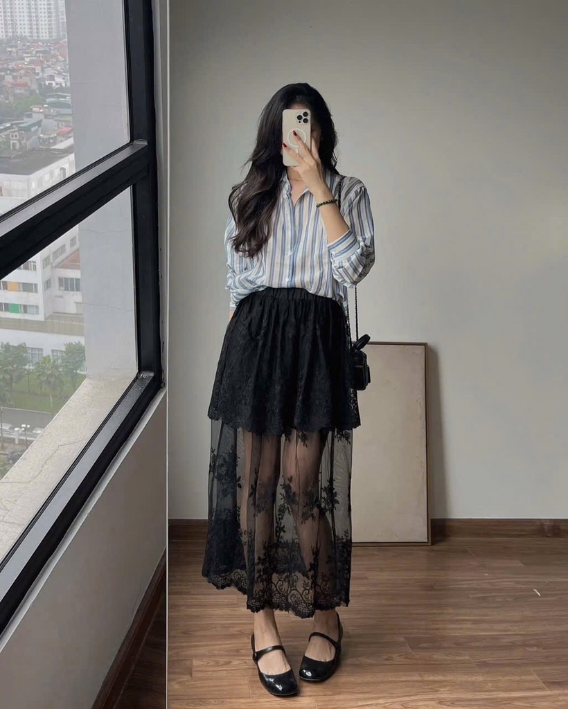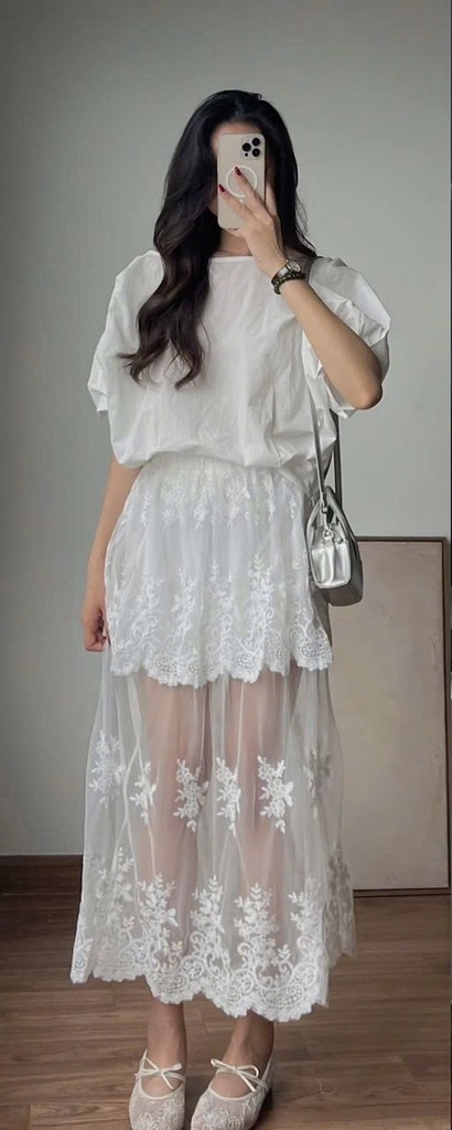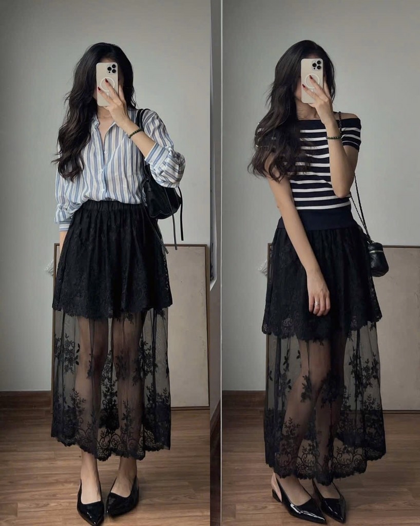 Các bà mix chân váy với cái nào chả thành bánh bèo keke. E lên váy 2 lớp 2 màu sang choảng khỏi nói nhé