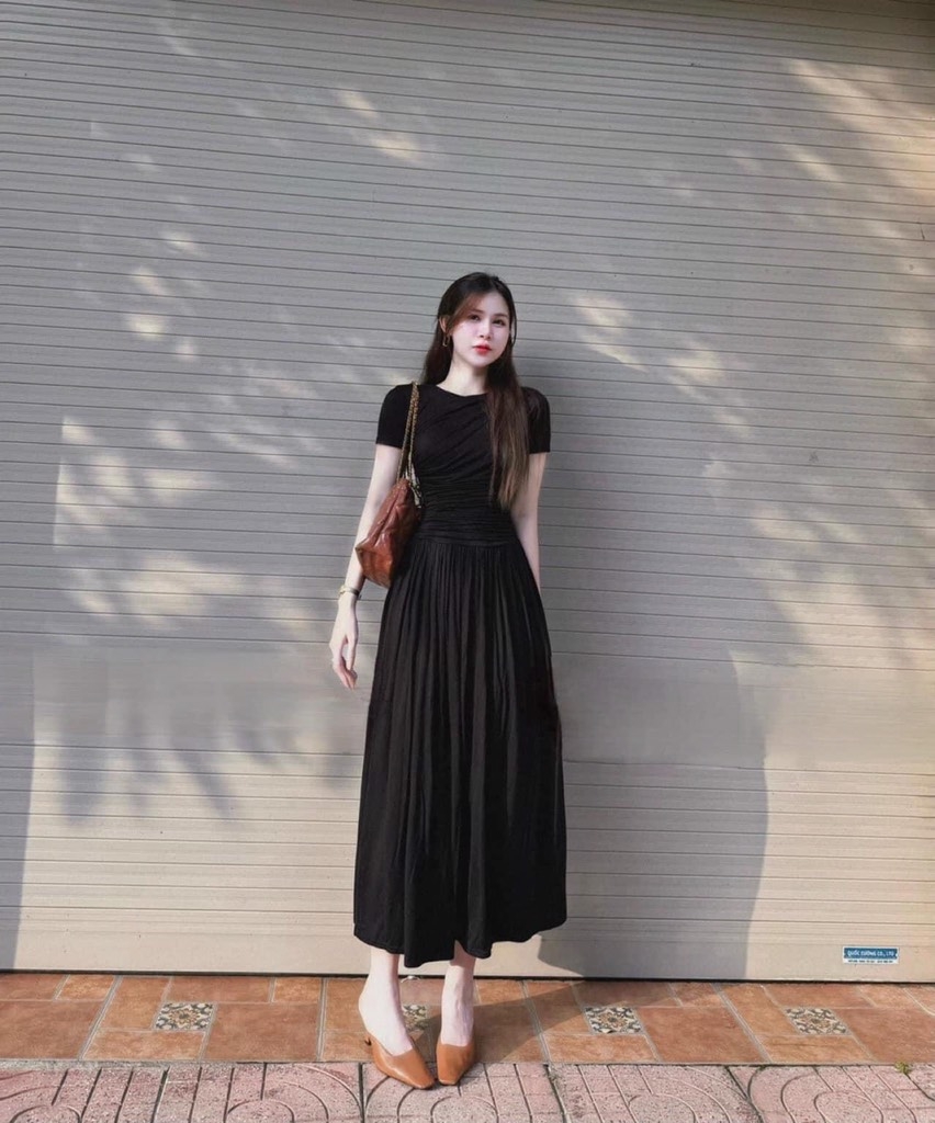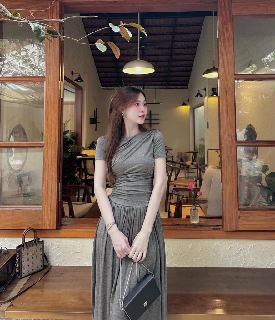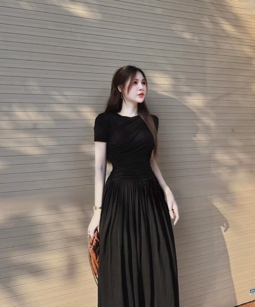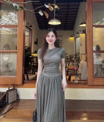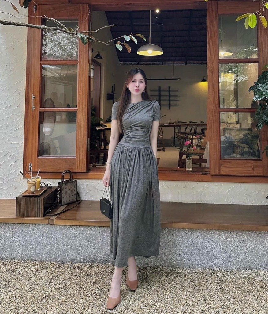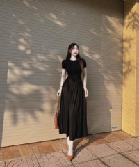 ‼️HOT : VÁY SUÔNG CỘC TAY XOÈ DÚM VAI 2M ĐEN XÁM V082