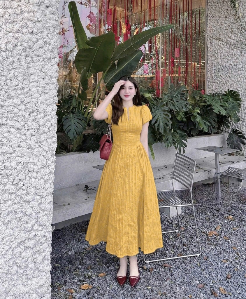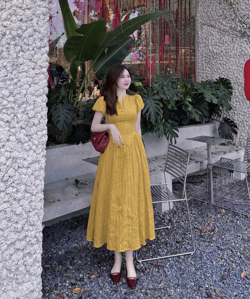 🌿Dáng dài thướt tha, tay bồng nữ tính – cực tôn dáng và tôn da.