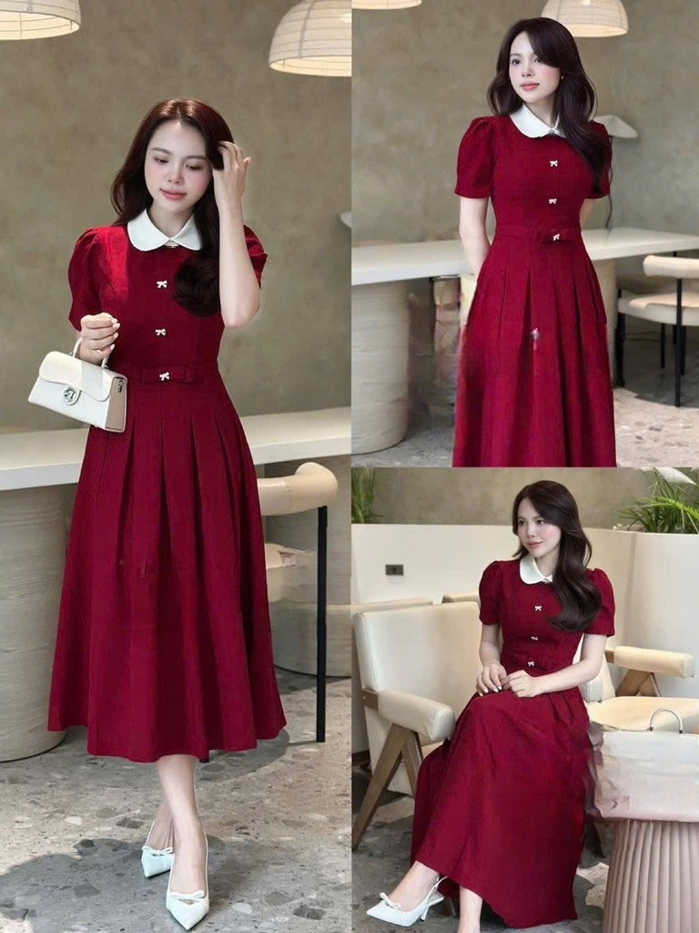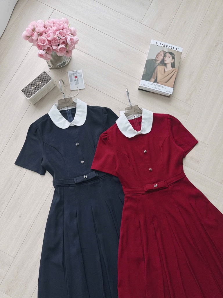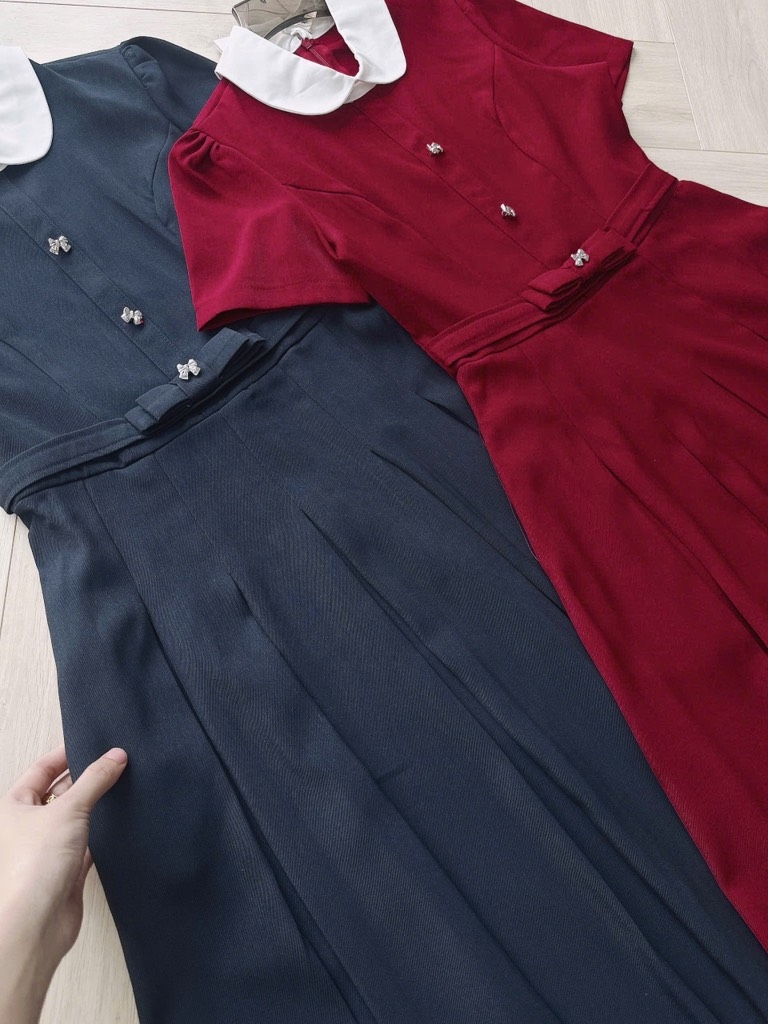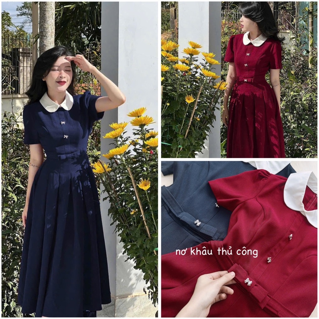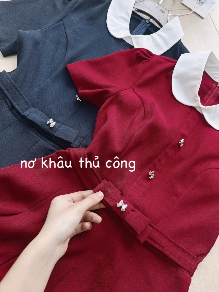 🌿Thiết kế xinh xắn , tiểu thư , từng đường xếp li tỉ mỉ , nơ eo đồng điệu , nhấn nhá xinh xinh . Kết hợp đính tag cao cấp , tổng thể lên đồ cực kì chanh xả !