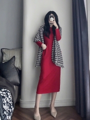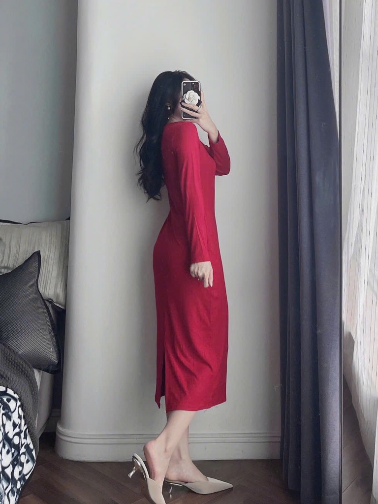 VÁY ZIP ĐỎ XẺ SAU NỮ