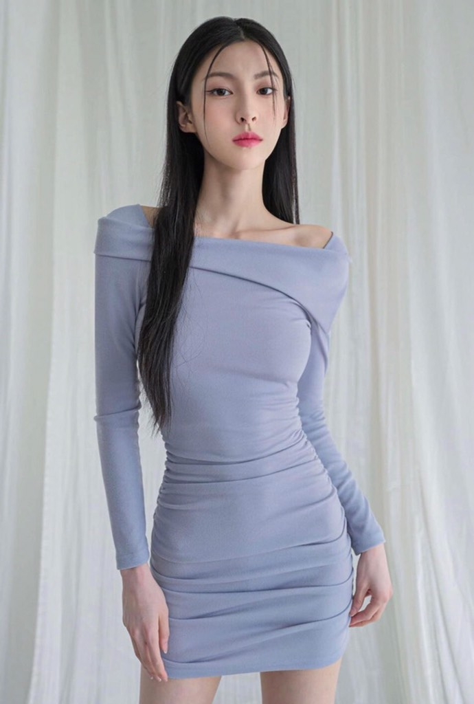 VÁY ZIP TRỄ VAI DÀI TAY VẠT CHÉO