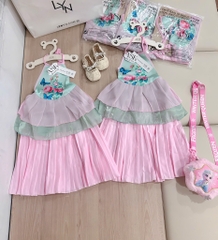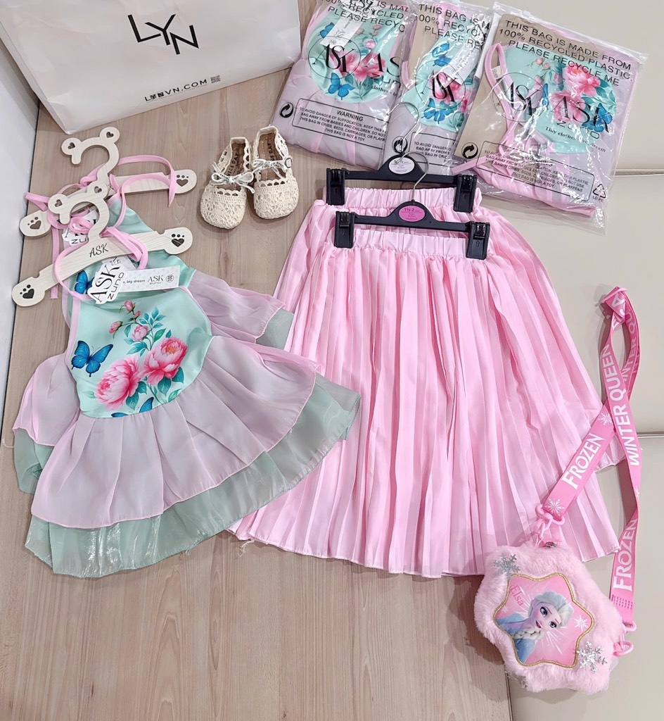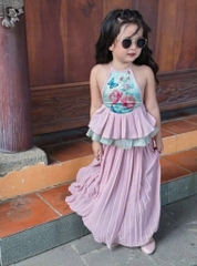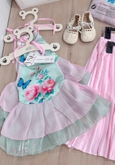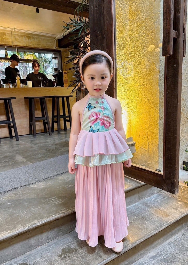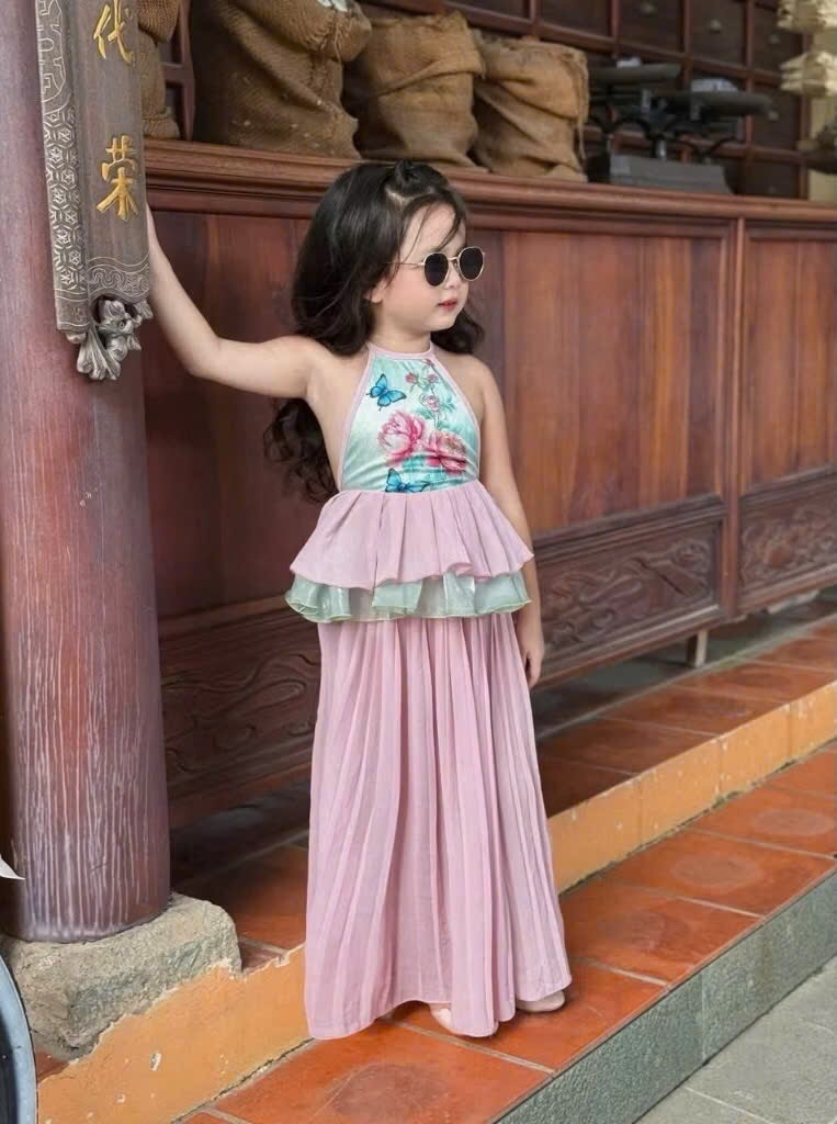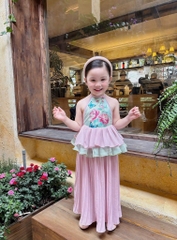 Đặc trưng mùa Trung thu cho mấy bé gái thì phải có yếm r ạ. Yếm lụa + váy dập ly
